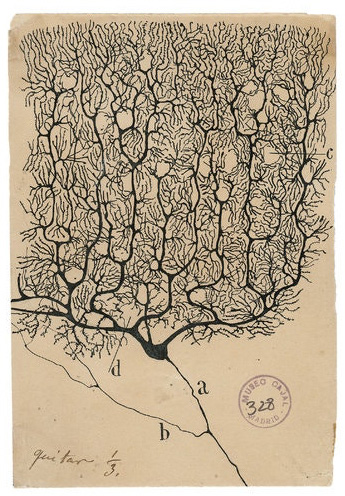 A Purkinje neuron in the human cerebellum hand-drawn by Ramón y Cajal in 1899